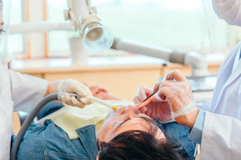 専用の薬剤と光を使用して、歯を削らずに色味を明るくする処置を行っています。
